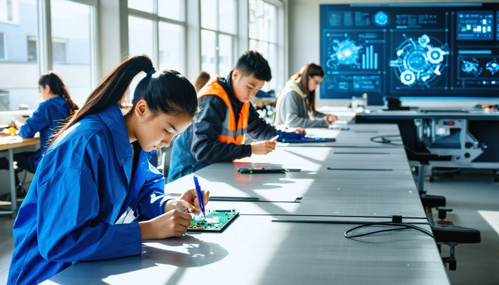 Trade schools narrow workforce gaps by providing fast, affordable, hands‑on training that mirrors employer needs. They focus on high‑demand occupations, offering two‑year or shorter programs aligned with industry certifications and licensure. Apprenticeship partnerships give students real‑world experience while supplying employers with a ready talent pipeline. Graduates earn median salaries of $65 K–$85 K, often surpassing four‑year degree peers, and enjoy low automation risk. Continued exploration reveals deeper understandings into enrollment trends and future prospects.